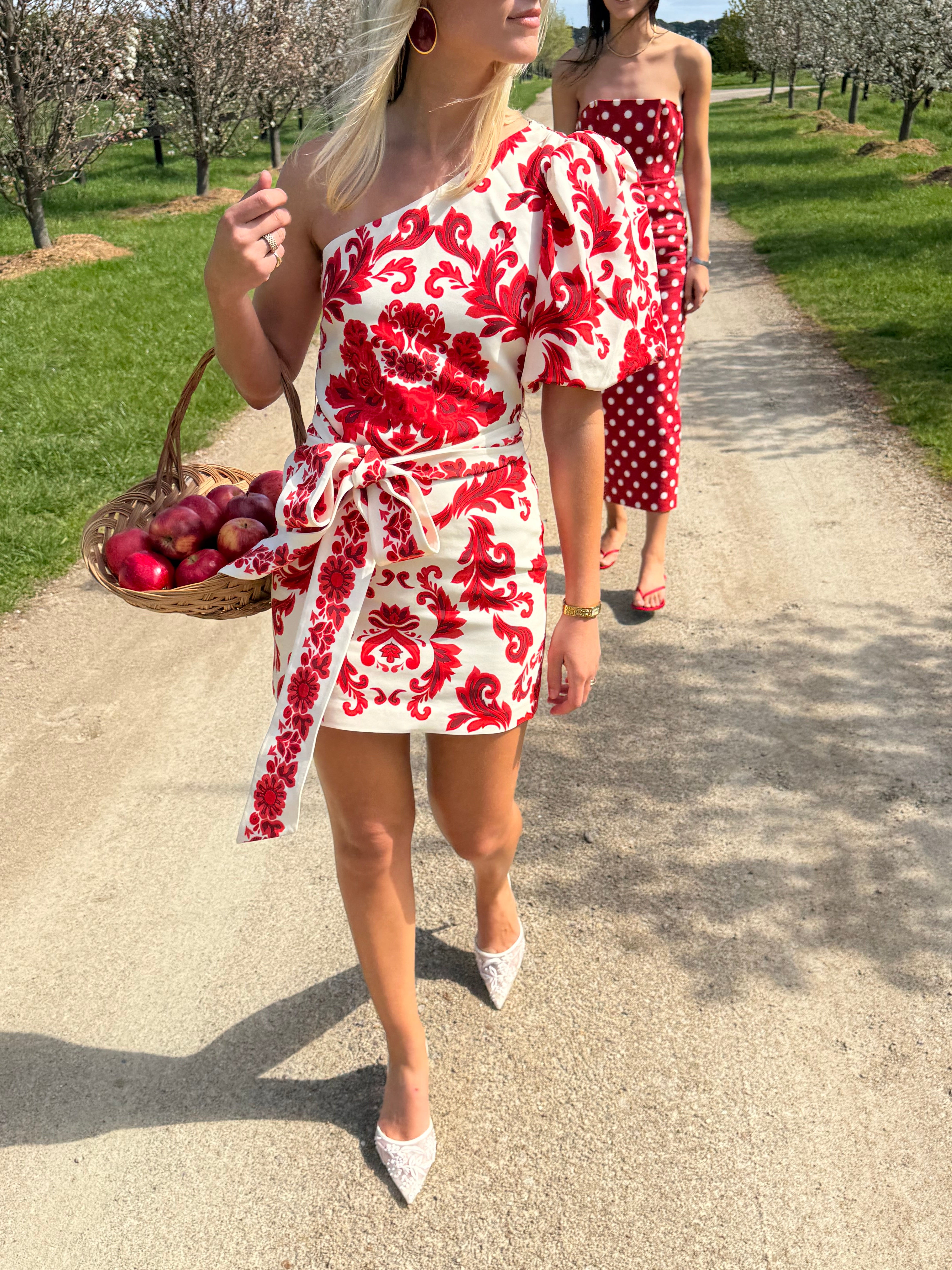 Make an entrance in the Lucia Mini by Cara Cara. Featuring a statement one shoulder puff sleeve and waist tie, this dress was made for spring & summer events!