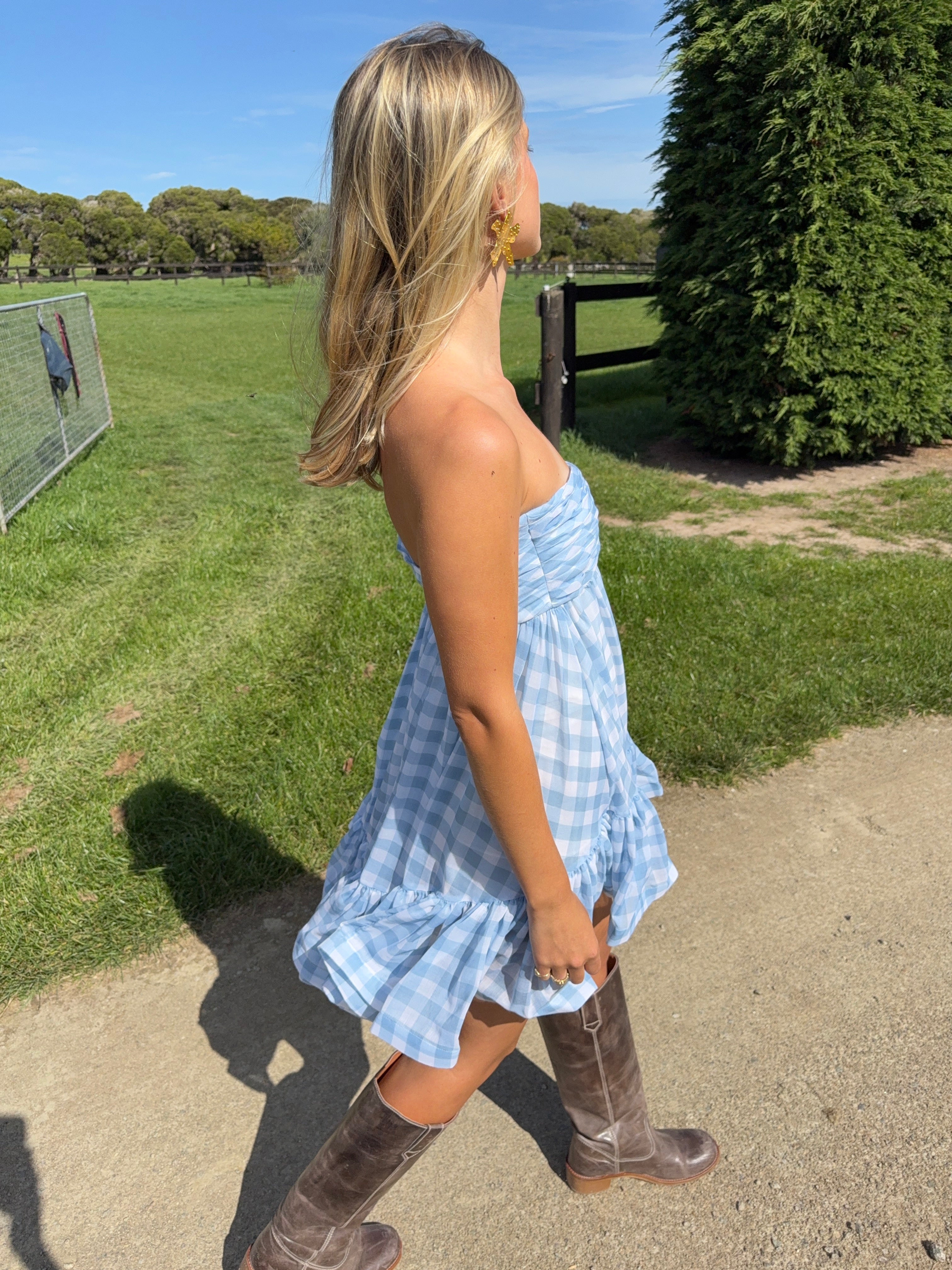 Our Maple Mini is a strapless piece with a ruffled hem that adds a pop of color and movement, ideal for spring & summer events. Best suited to a S/8.